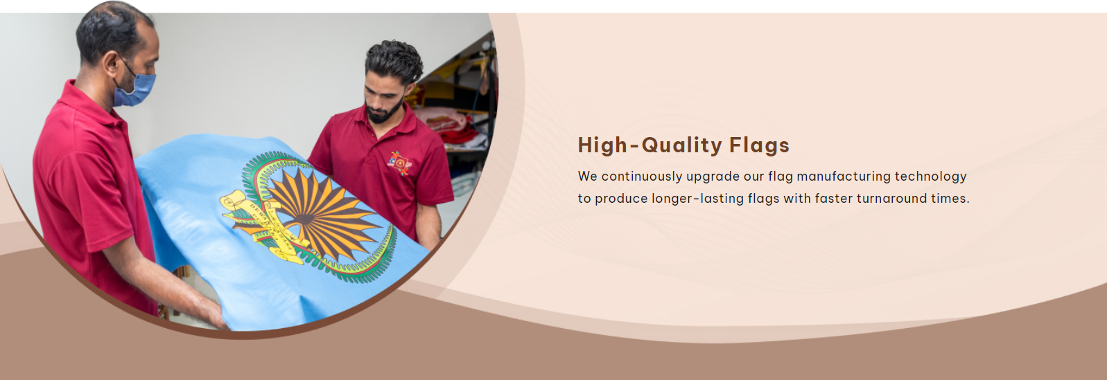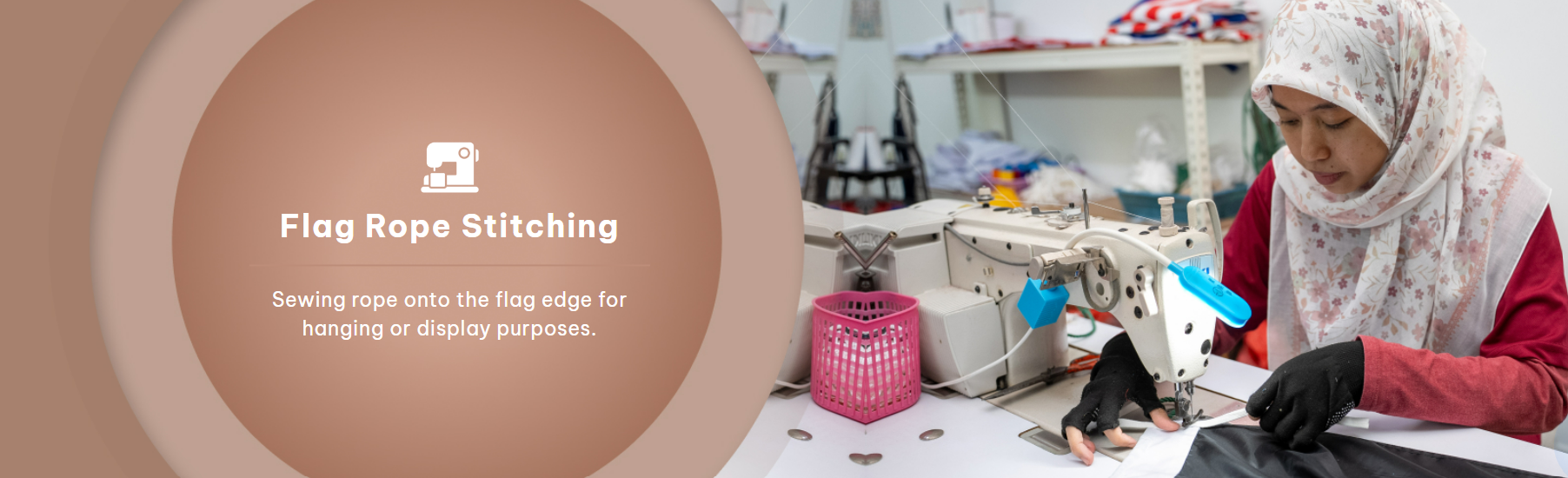 Handmade sewing is the hallmark of our flag production. Our skilled tailors bring over 20 years of expertise to meticulously stitch fine details with precision and care. This process is ideal for custom flags requiring attention to detail and is often chosen for special occasions, ceremonies, or high-profile clients such as government and royal entities.